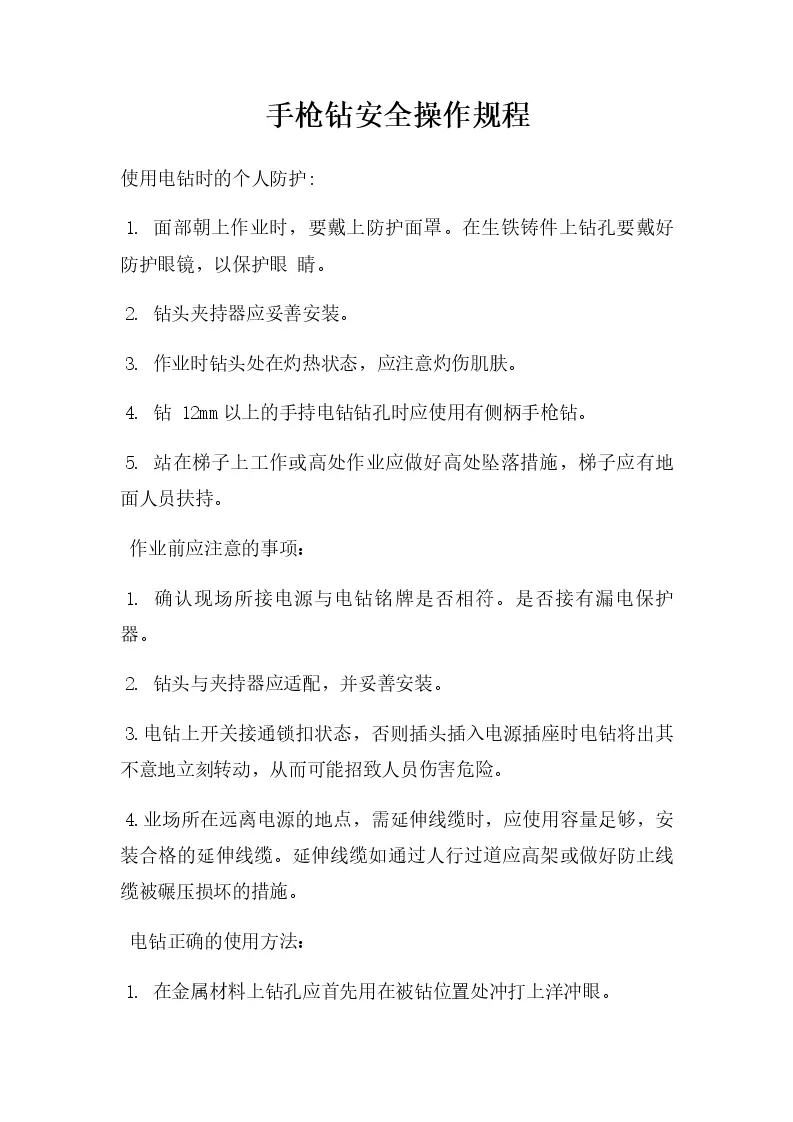 手枪钻安全操作规程