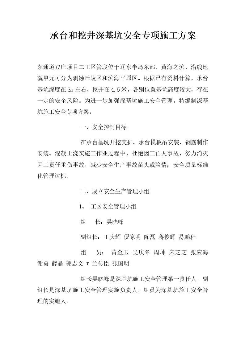 承台和挖井深基坑安全专项施工方案