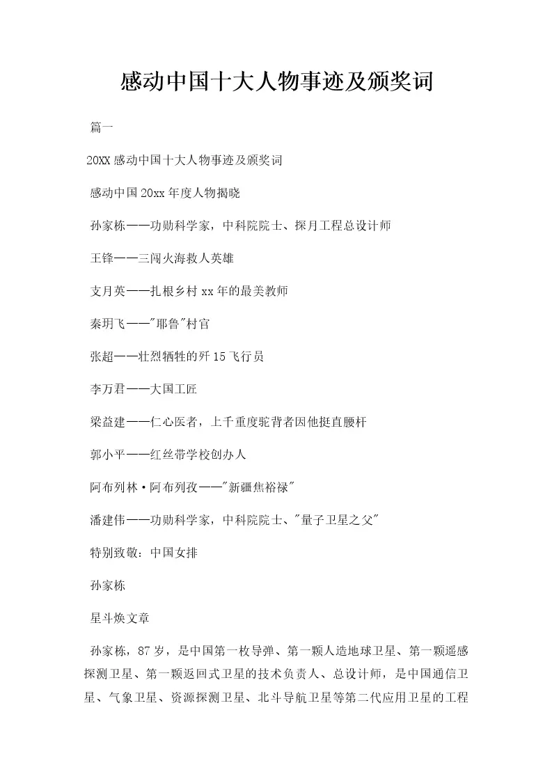 感动中国十大人物事迹及颁奖词