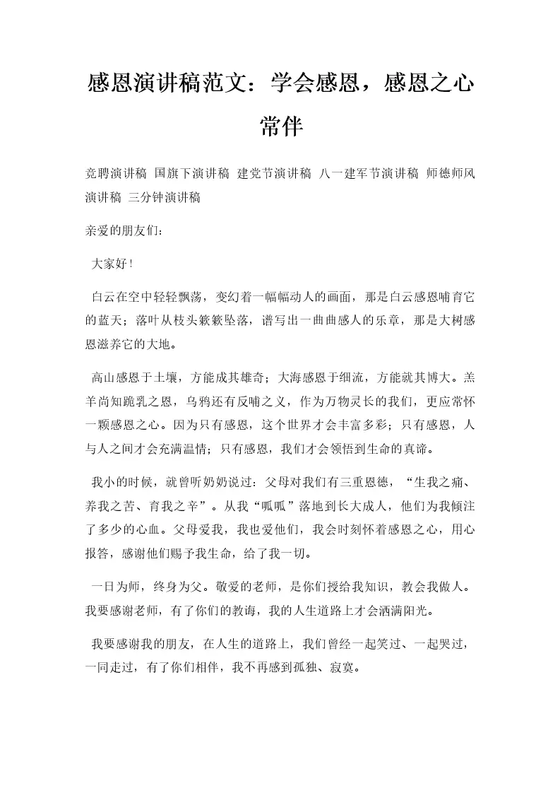 感恩演讲稿范文:学会感恩,感恩之心常伴