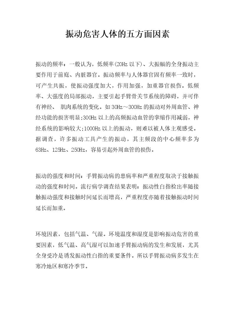 振动危害人体的五方面因素