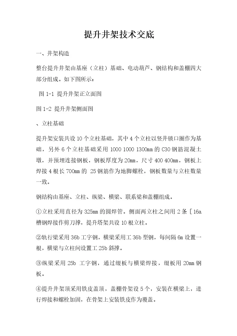 提升井架技术交底