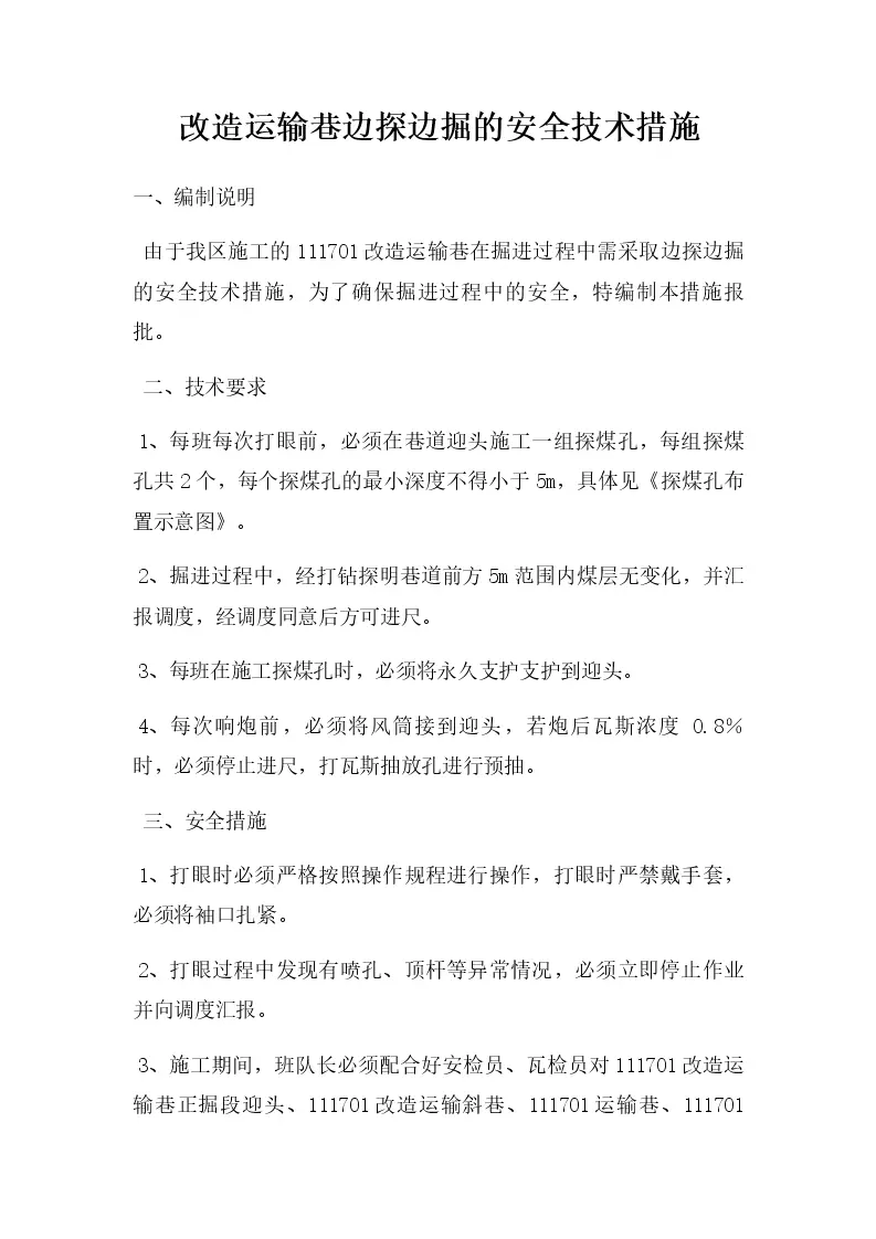 改造运输巷边探边掘的安全技术措施