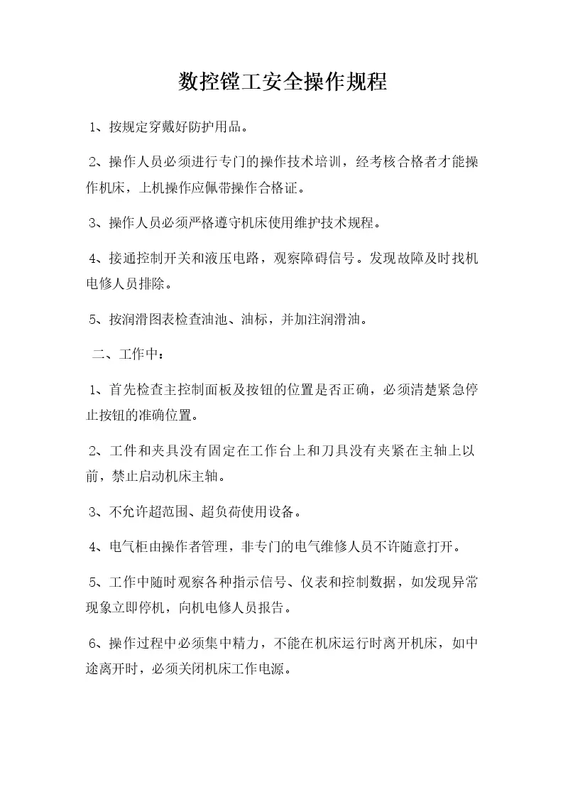 数控镗工安全操作规程