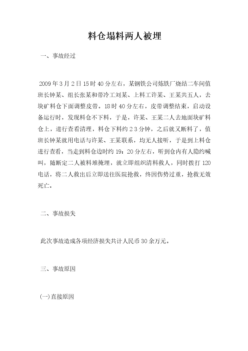 料仓塌料两人被埋
