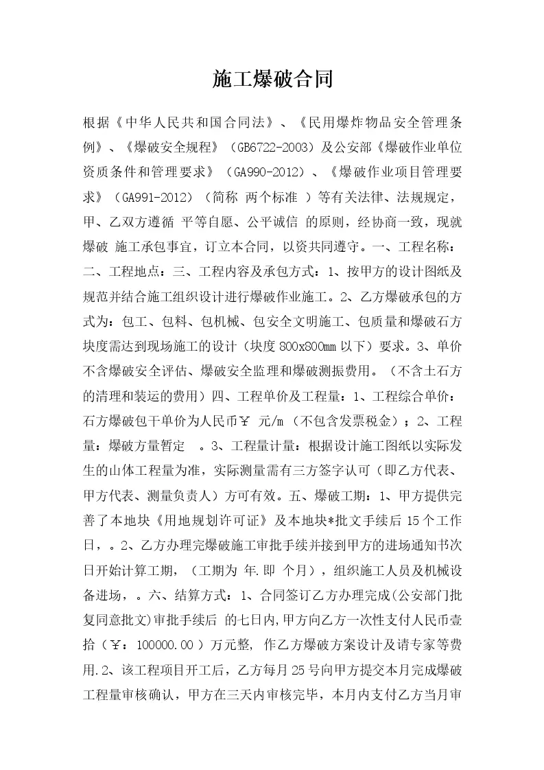施工爆破合同