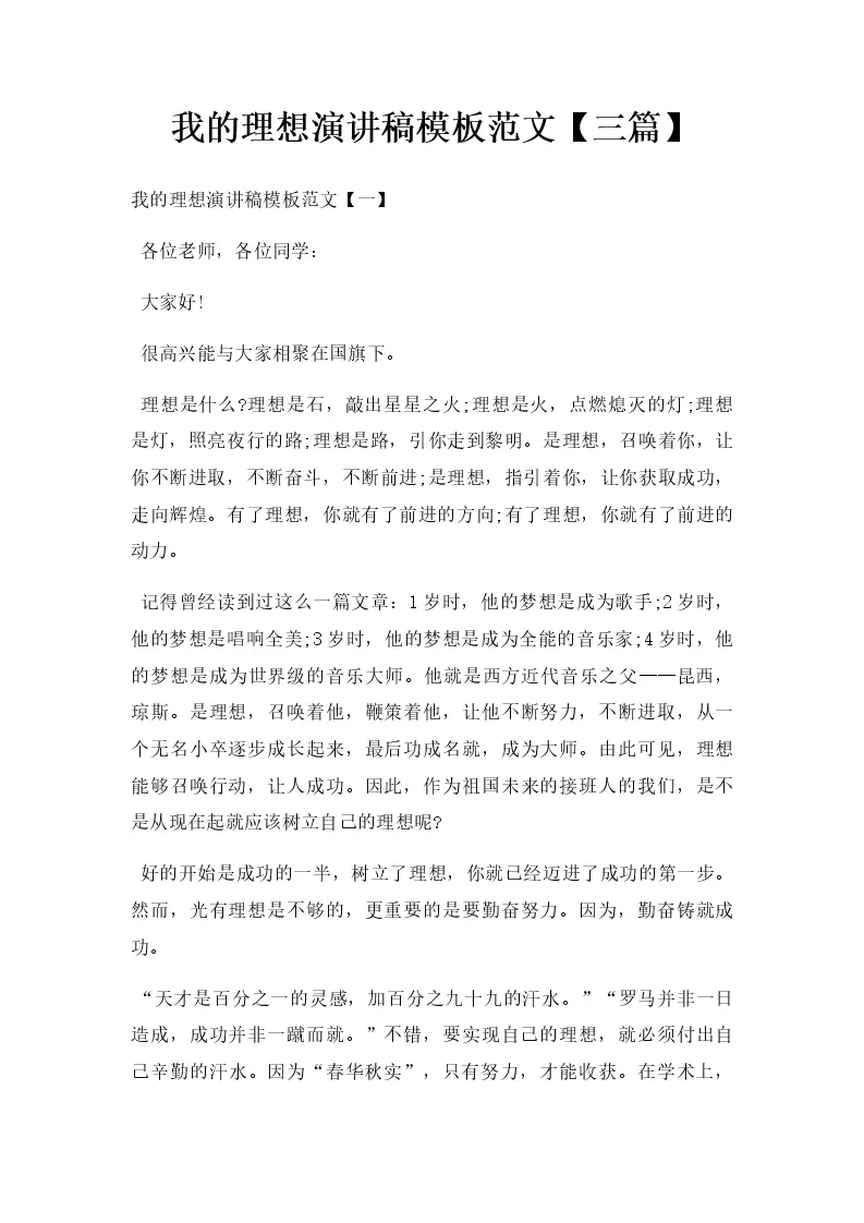 我的理想演讲稿模板...