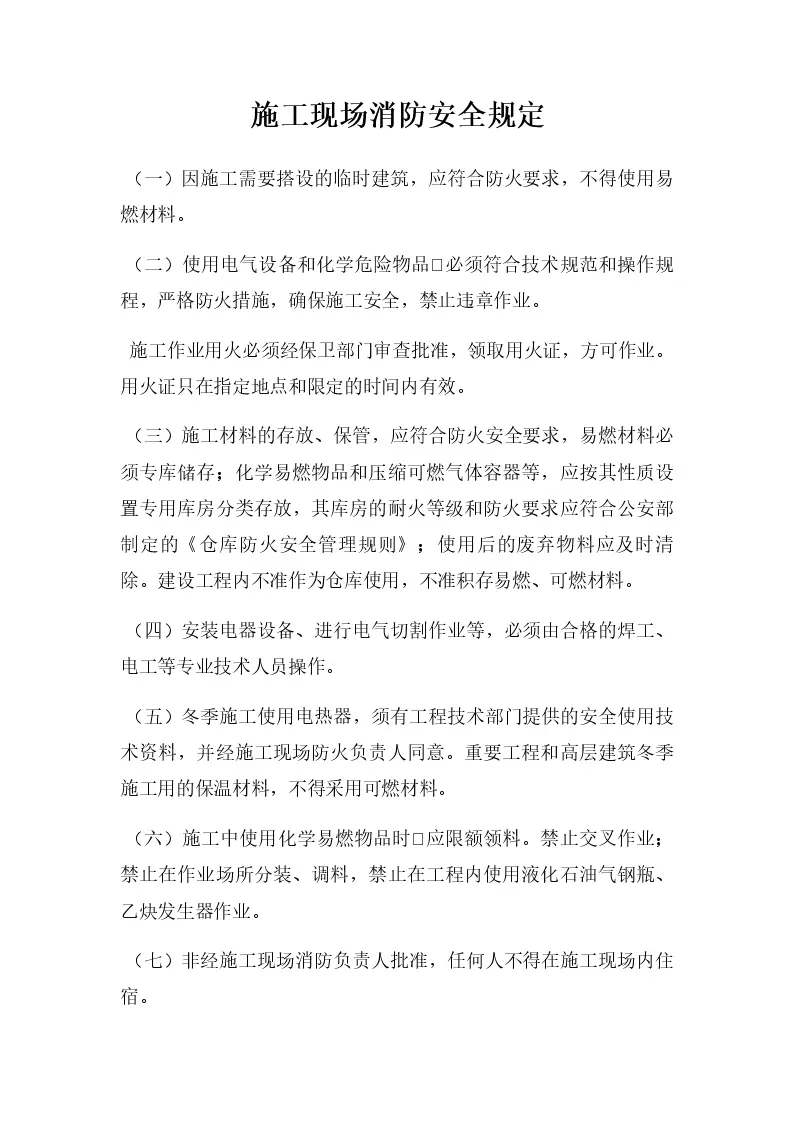 施工现场消防安全规定
