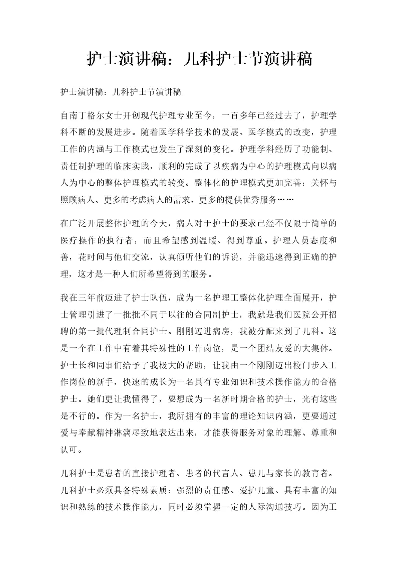 护士演讲稿:儿科护...