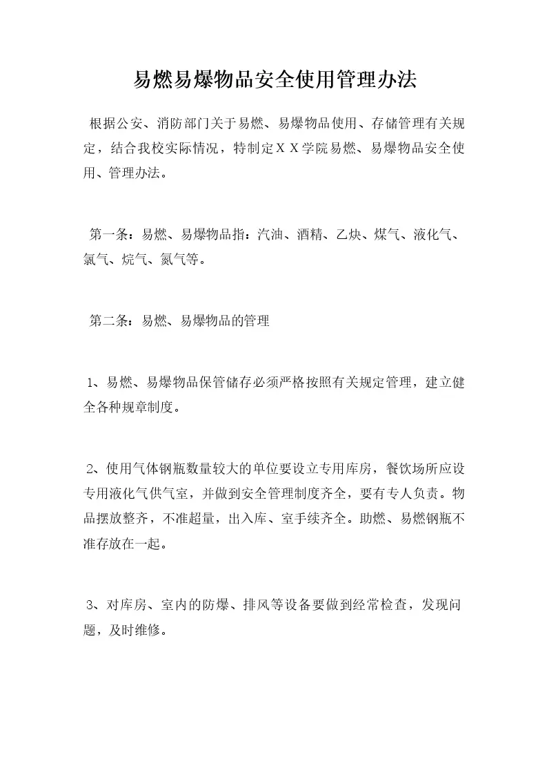 易燃易爆物品安全使用管理办法