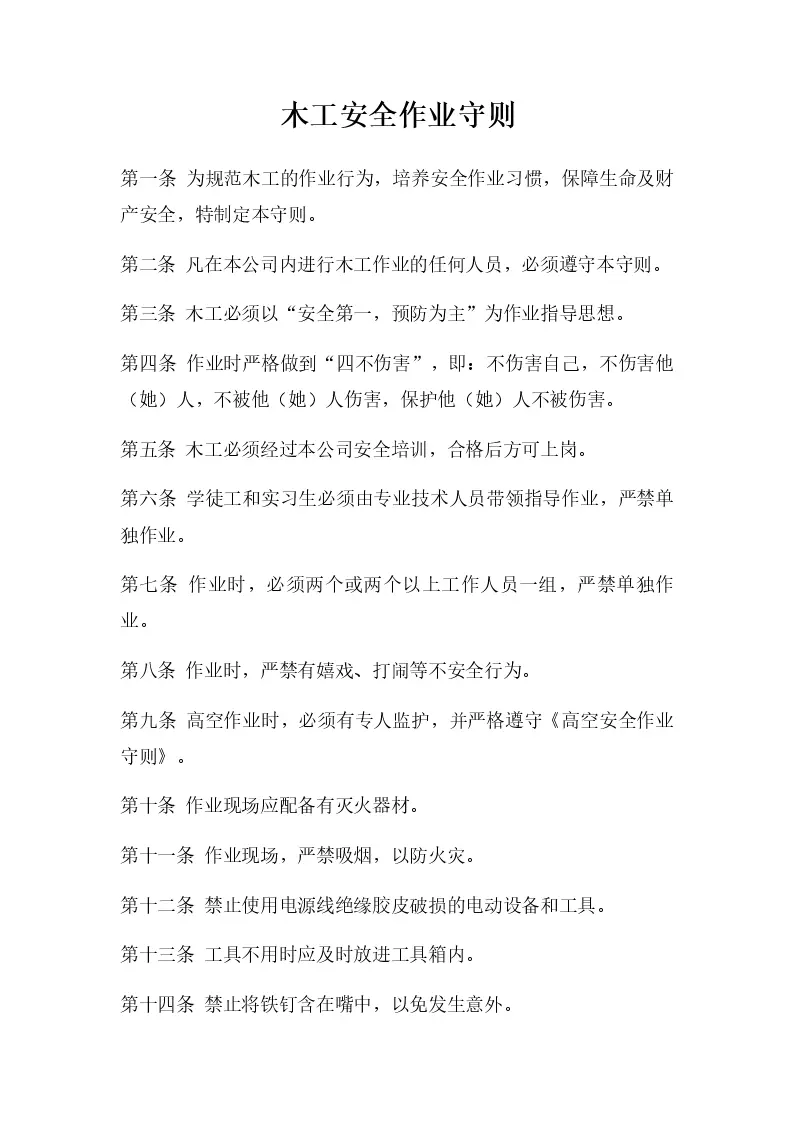 木工安全作业守则