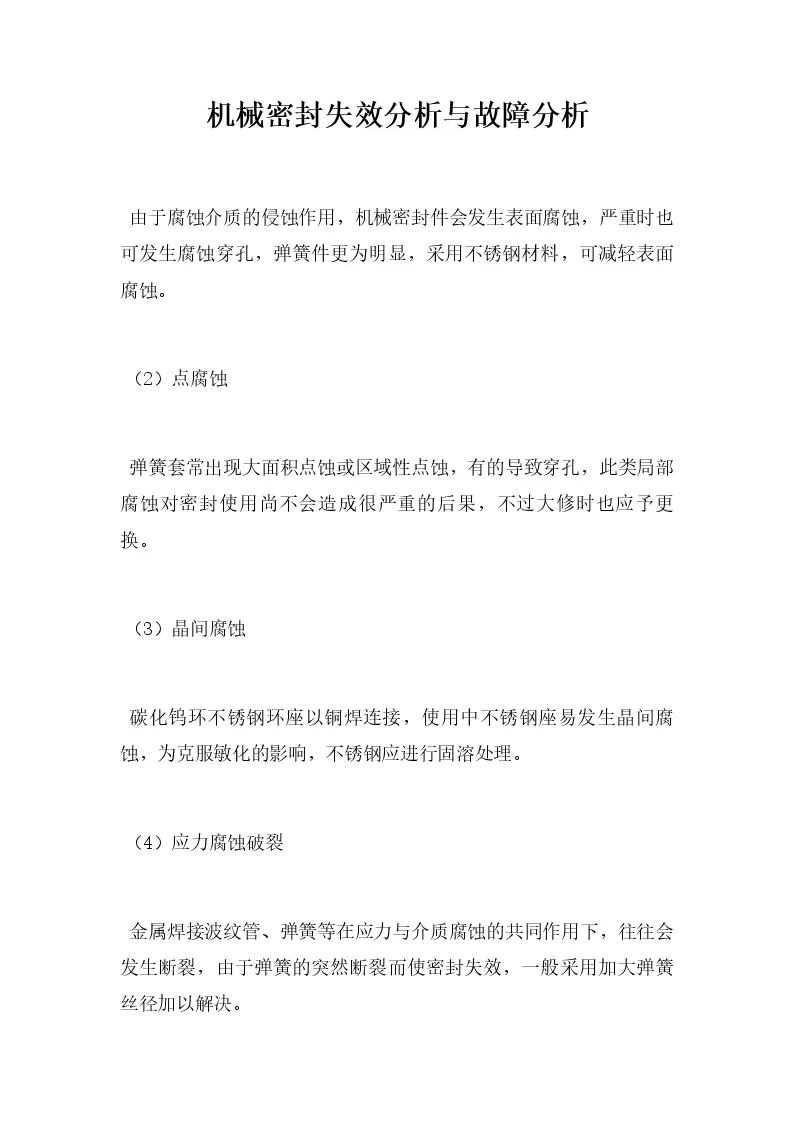 机械密封失效分析与故障分析