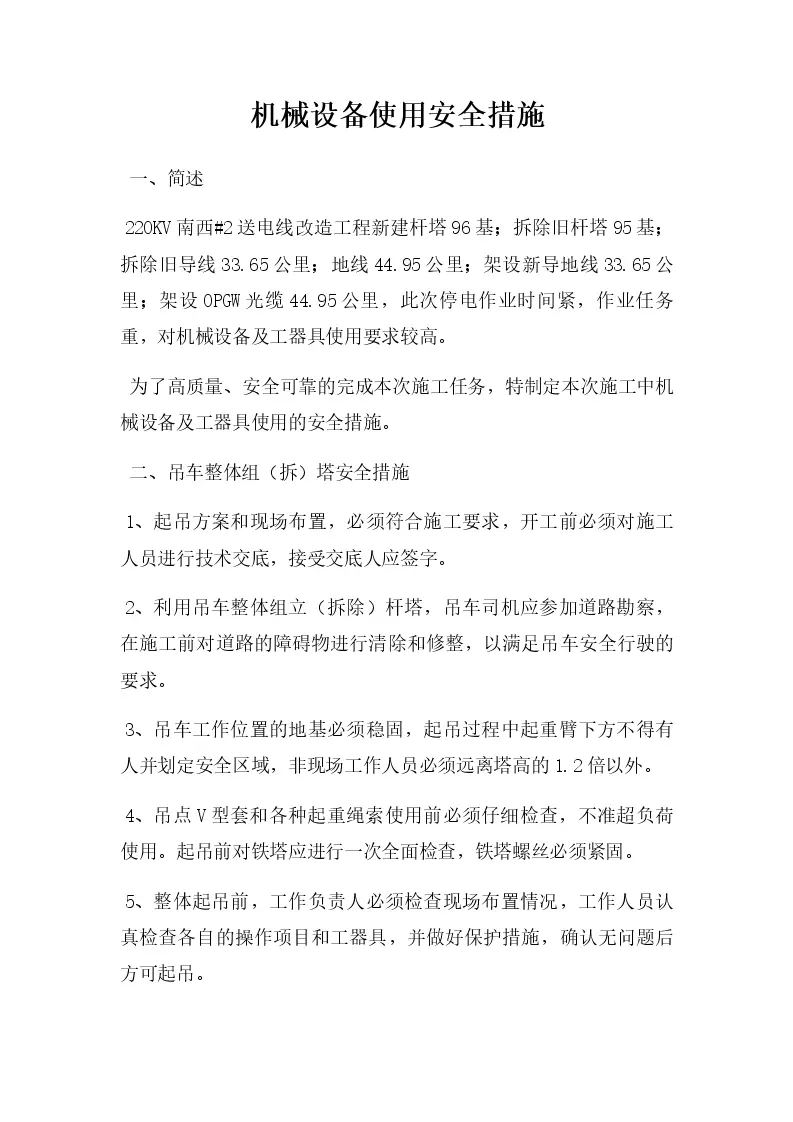 机械设备使用安全措施
