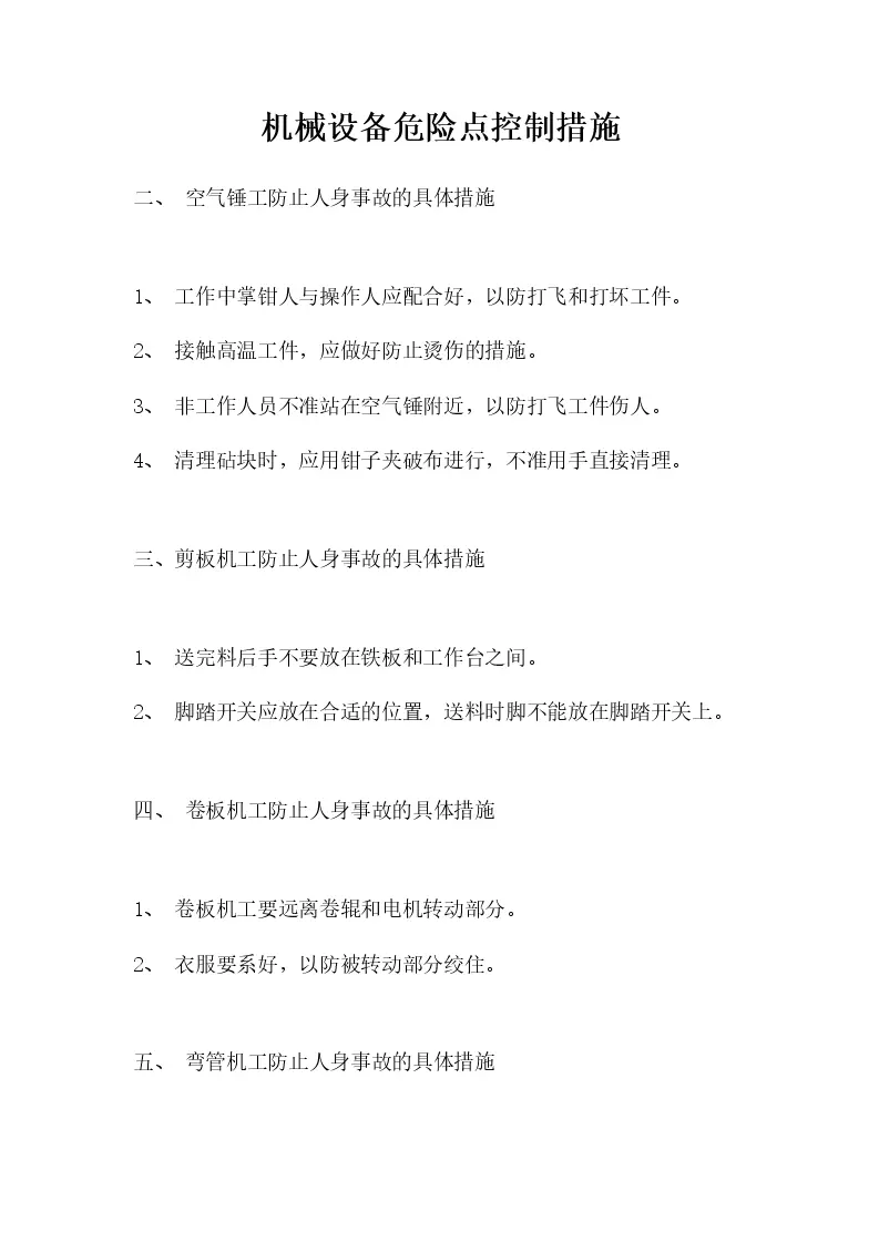 机械设备危险点控制措施