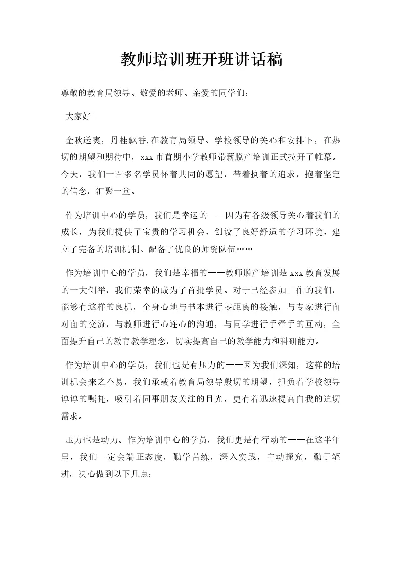 教师培训班开班讲话稿