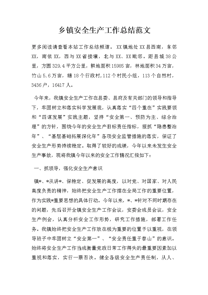 乡镇安全生产工作总结范文