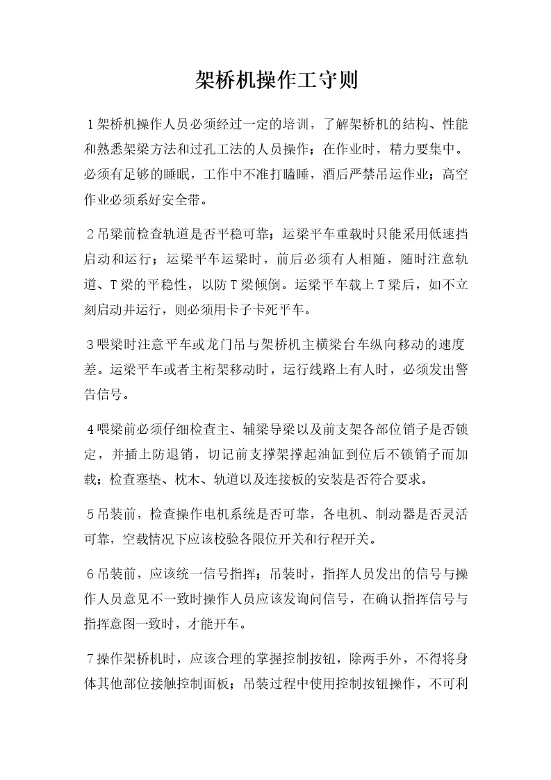 架桥机操作工守则