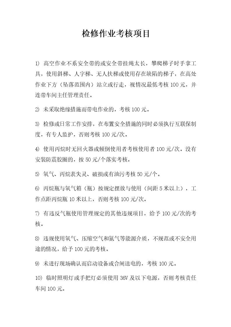 检修作业考核项目