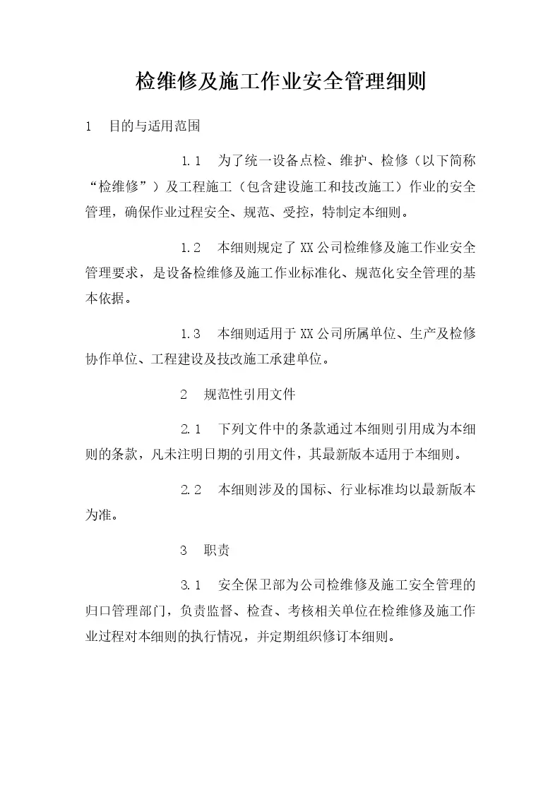 检维修及施工作业安全管理细则
