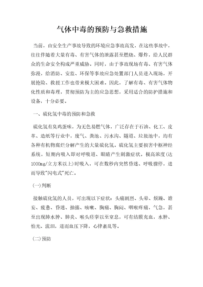 气体中毒的预防与急救措施