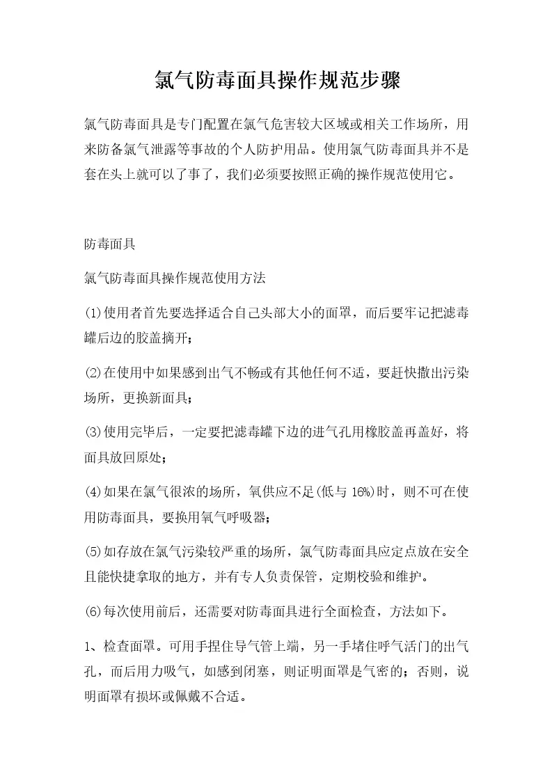 氯气防毒面具操作规范步骤