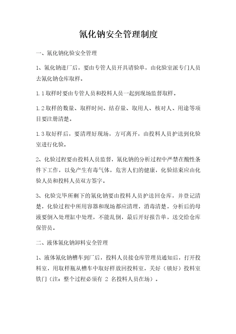 氰化钠安全管理制度