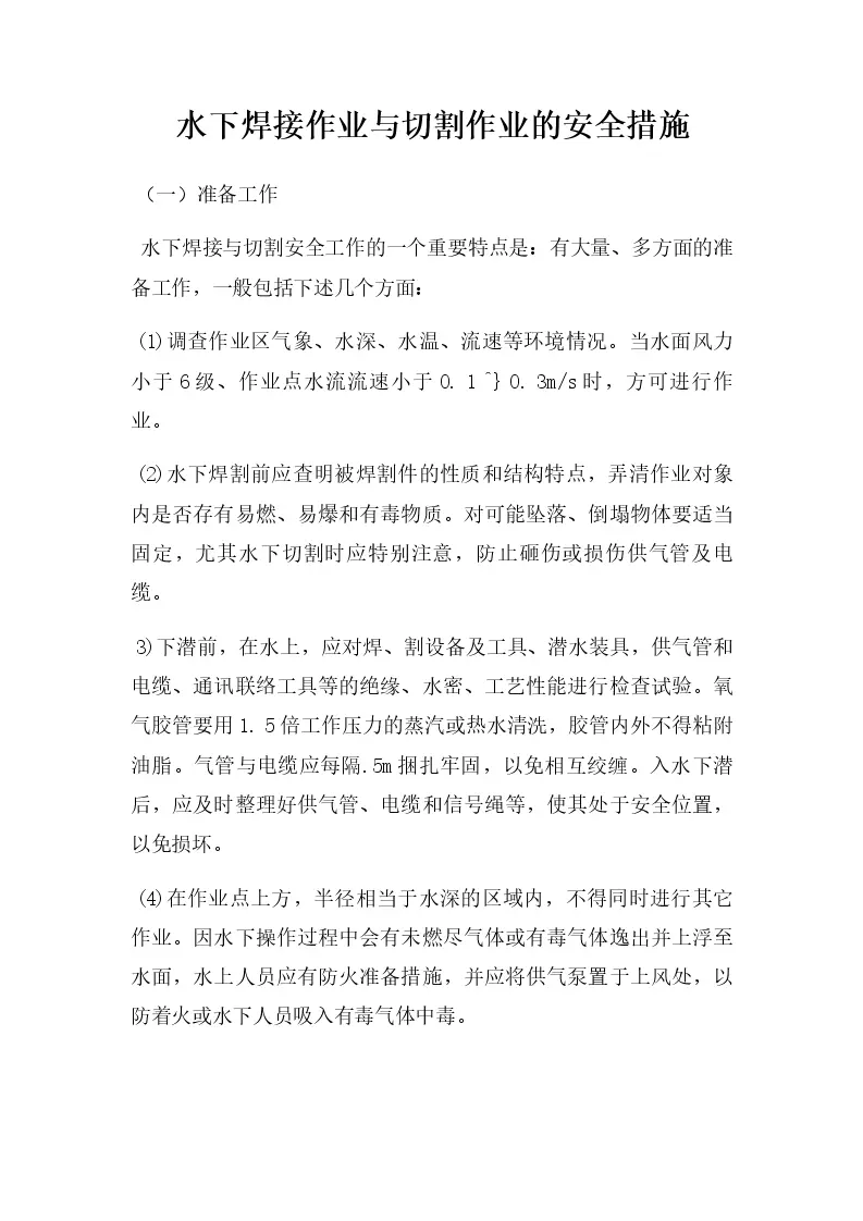 水下焊接作业与切割作业的安全措施