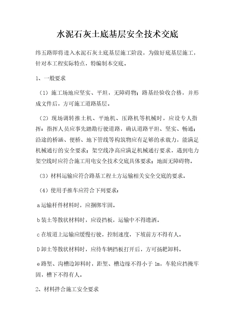 水泥石灰土底基层安全技术交底