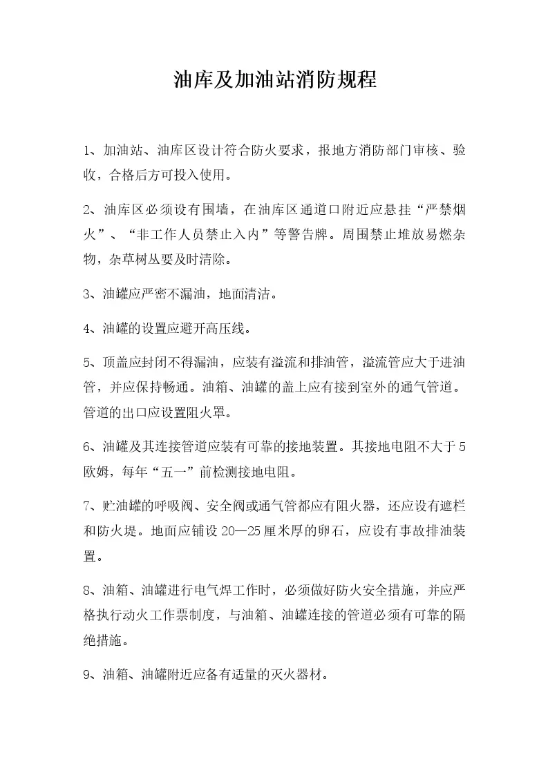 油库及加油站消防规程