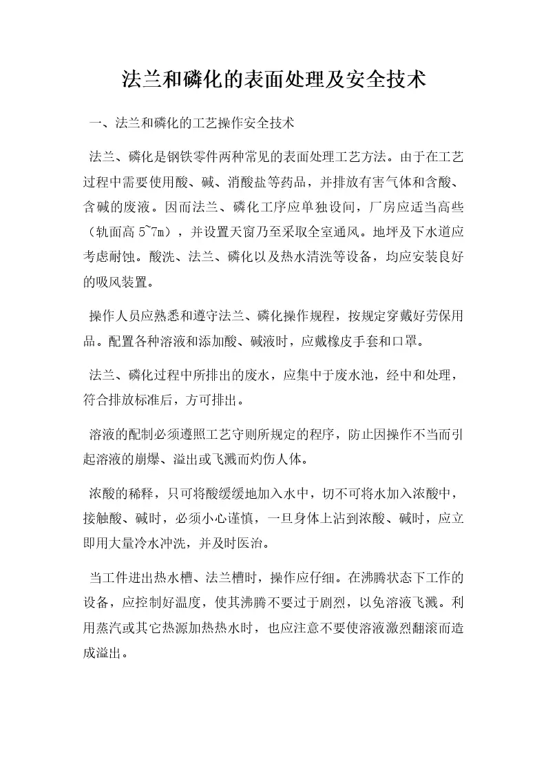 法兰和磷化的表面处理及安全技术