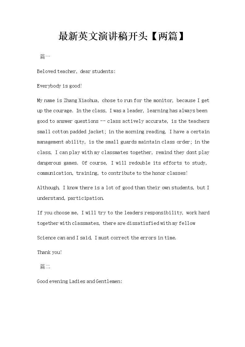 最新英文演讲稿开头【两篇】