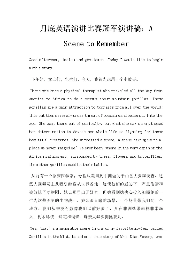 月底英语演讲比赛冠军演讲稿:A Scene to Remember