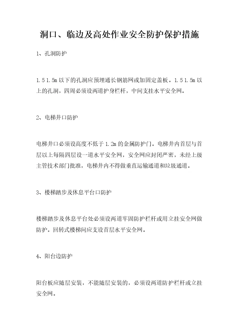 洞口、临边及高处作业安全防护保护措施