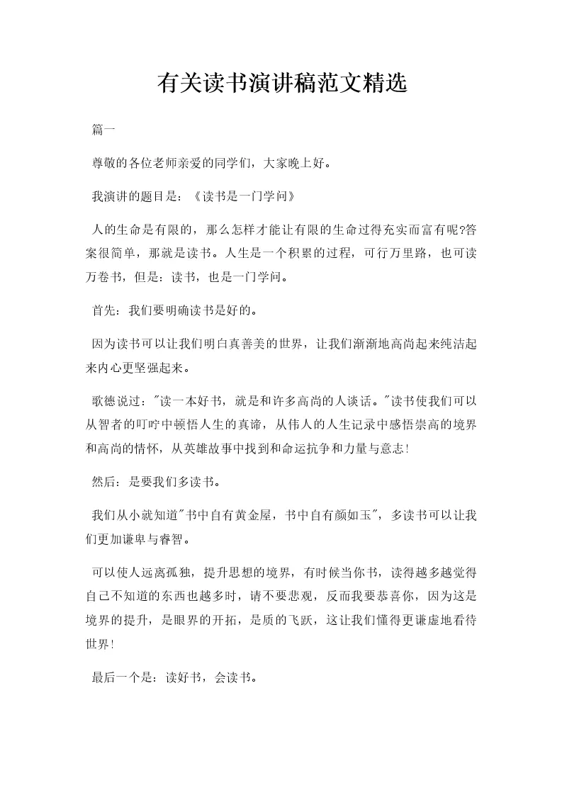 有关读书演讲稿范文...