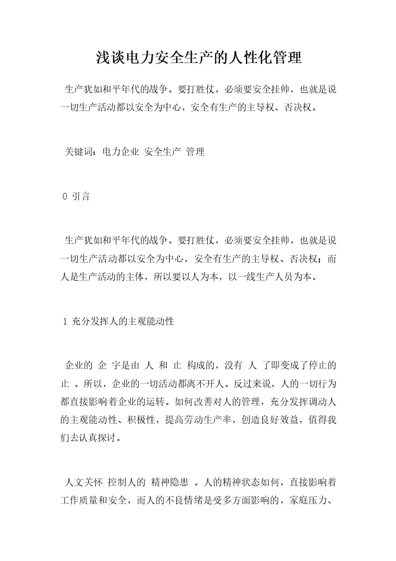 浅谈电力安全生产的人性化管理