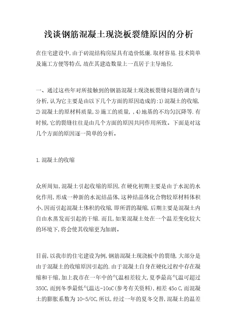 浅谈钢筋混凝土现浇板裂缝原因的分析