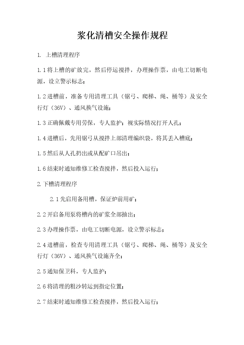 浆化清槽安全操作规程