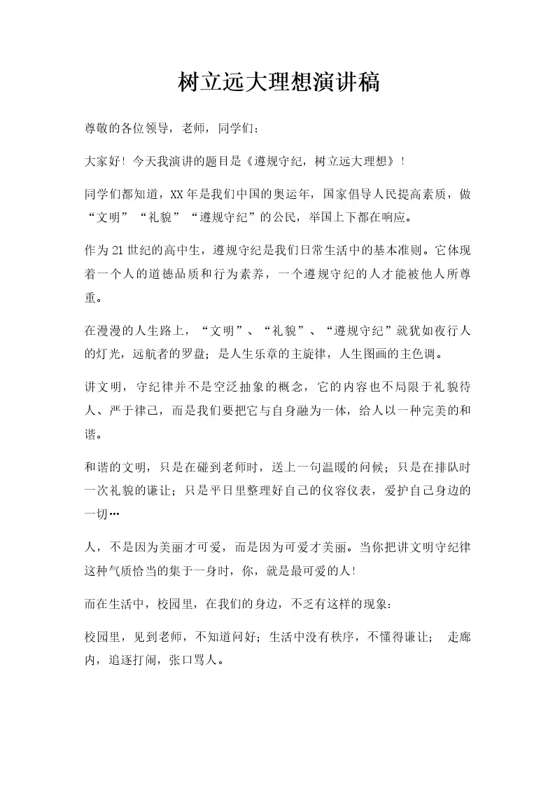 树立远大理想演讲稿
