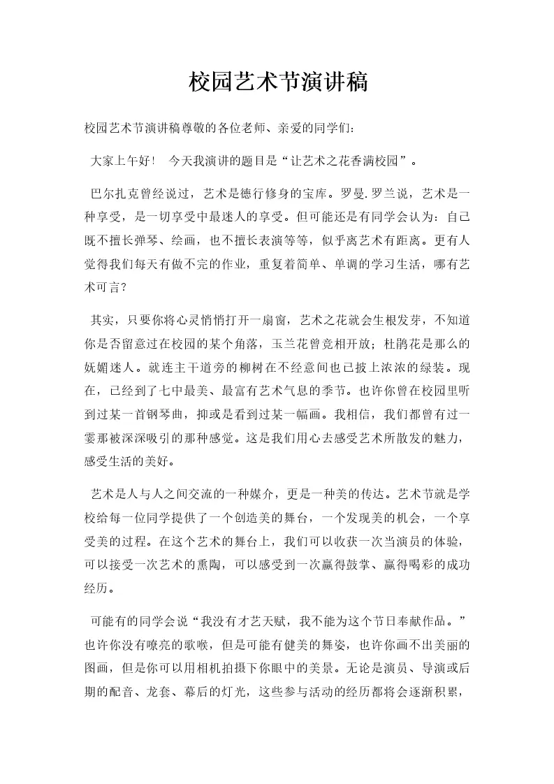 校园艺术节演讲稿