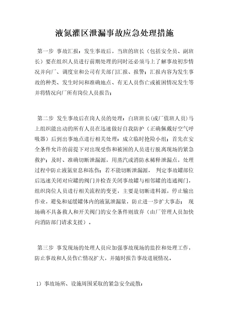 液氮灌区泄漏事故应急处理措施