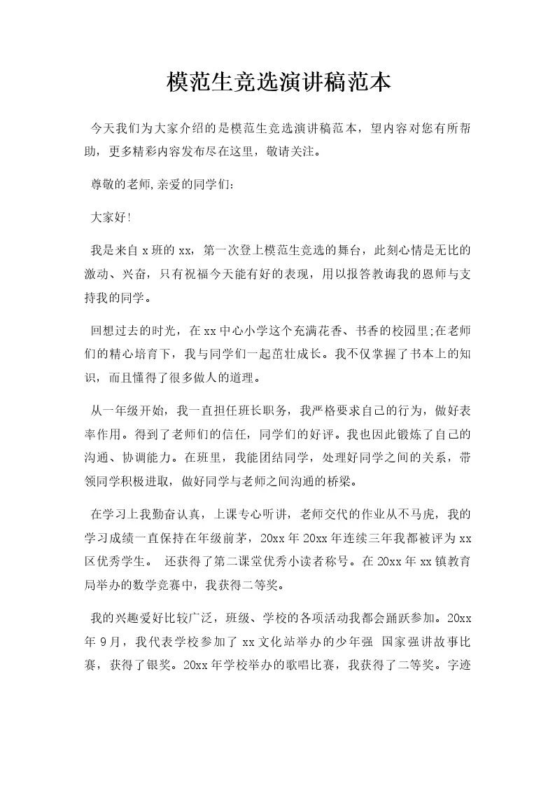 模范生竞选演讲稿范本