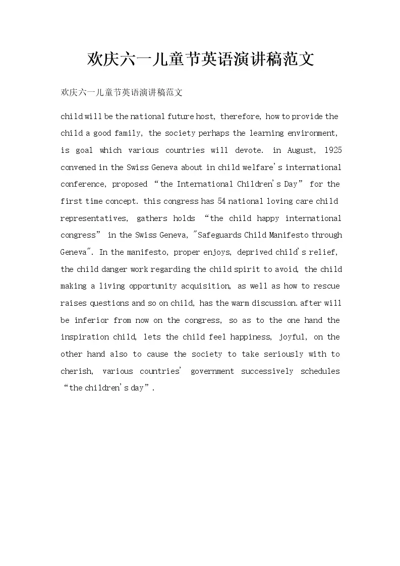 欢庆六一儿童节英语演讲稿范文