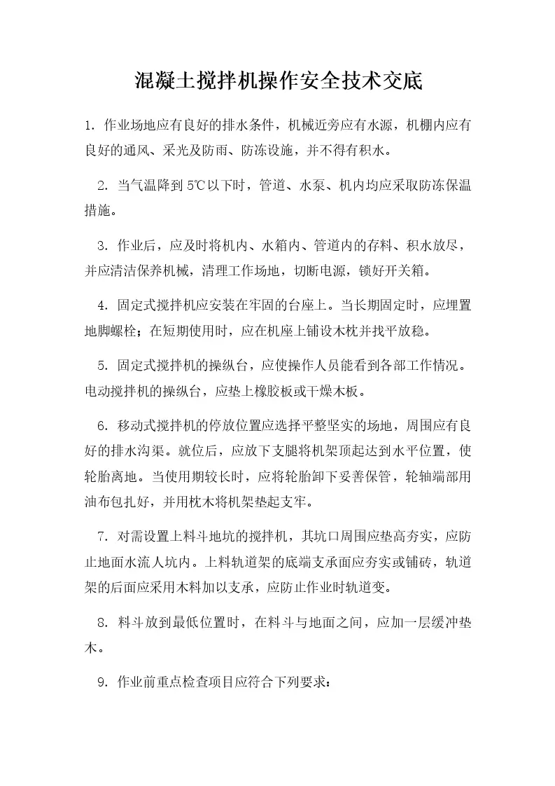 混凝土搅拌机操作安全技术交底