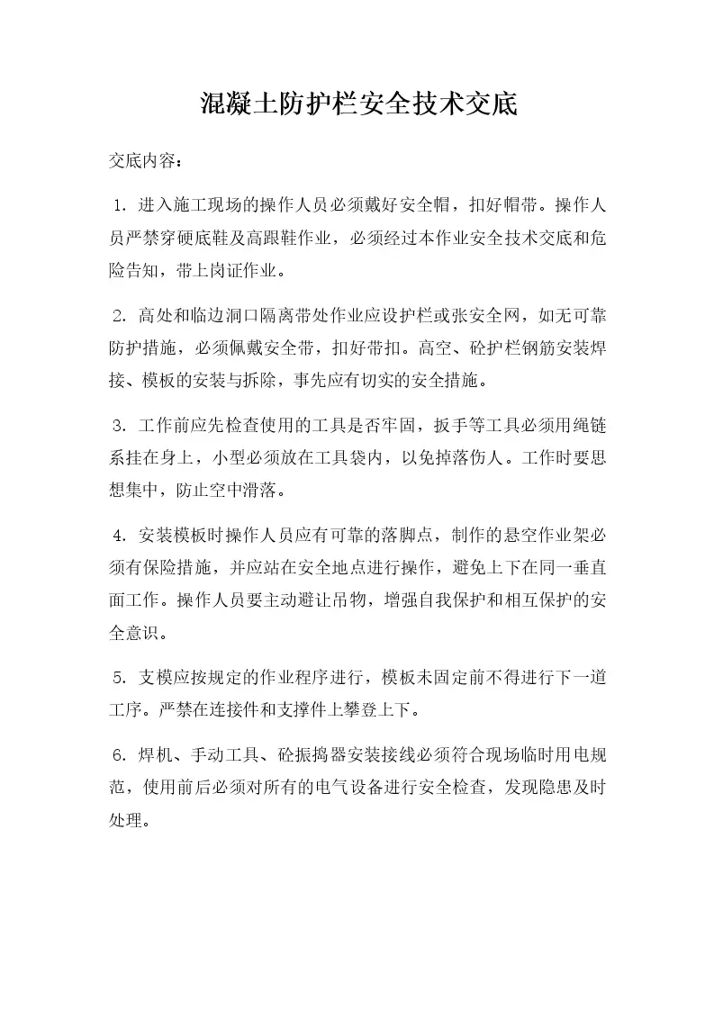 混凝土防护栏安全技术交底