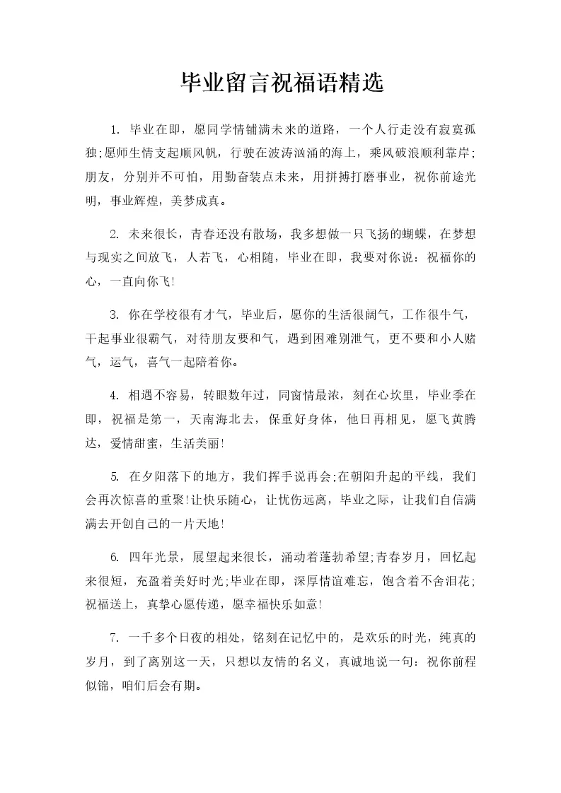 毕业留言祝福语精选