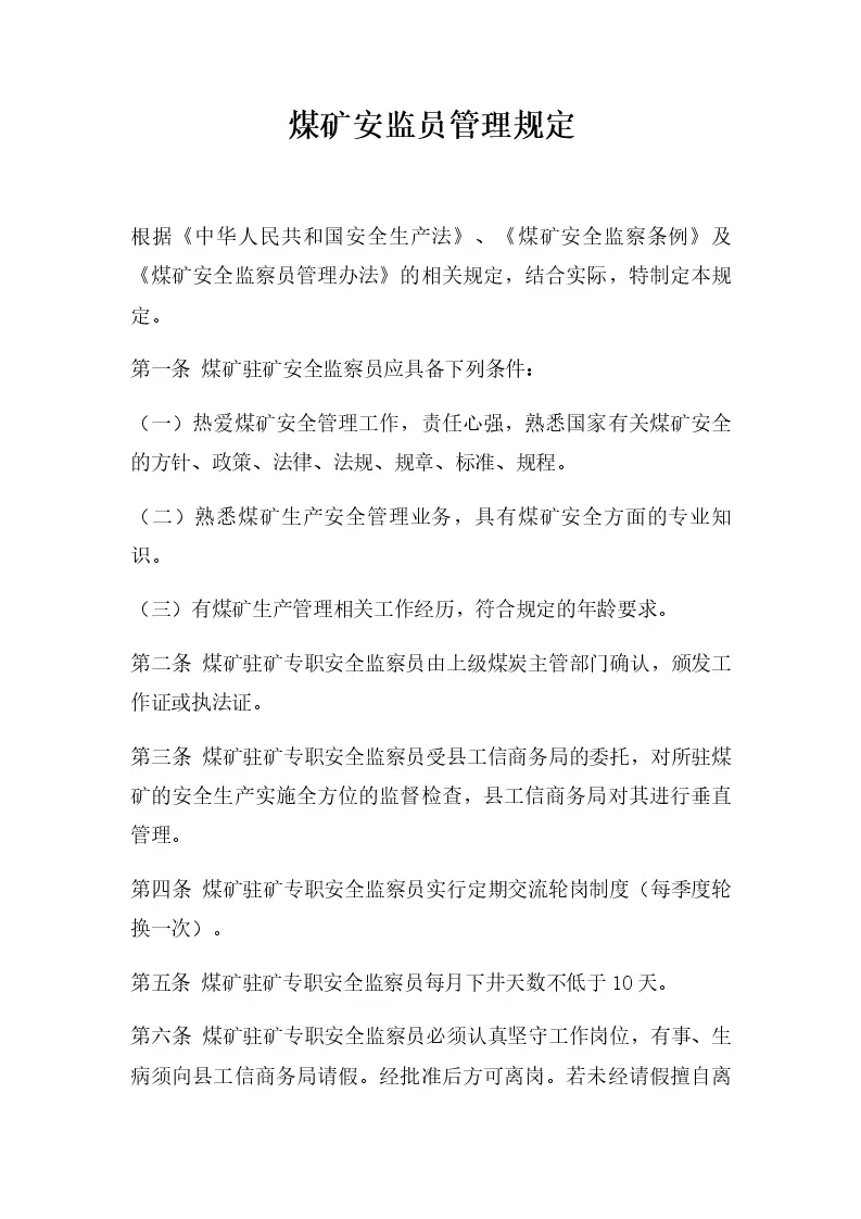 煤矿安监员管理规定