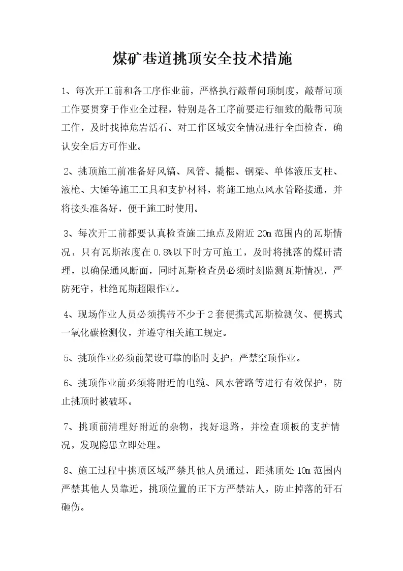 煤矿巷道挑顶安全技术措施