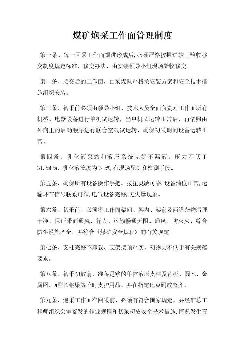 煤矿炮采工作面管理制度