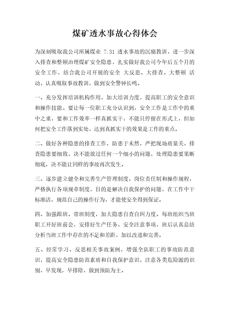 煤矿透水事故心得体会