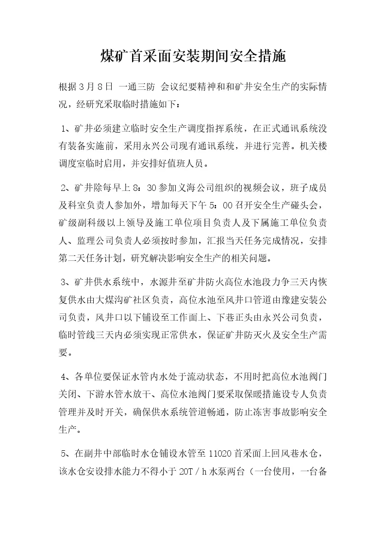 煤矿首采面安装期间安全措施
